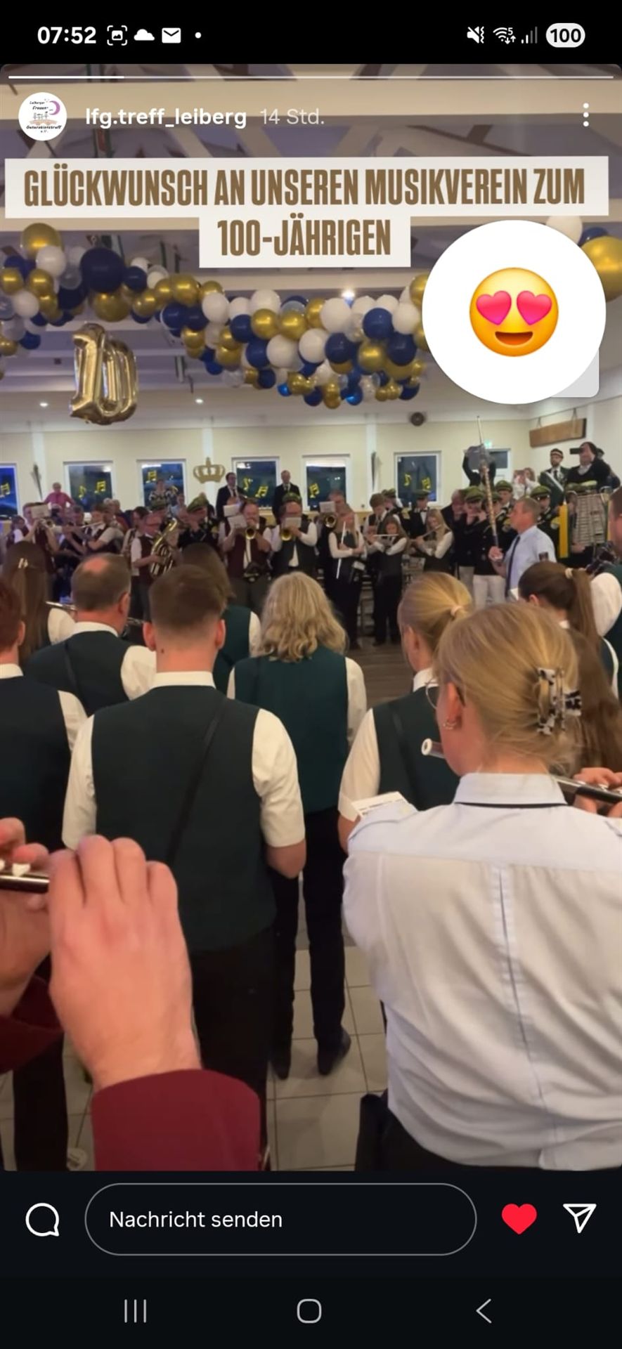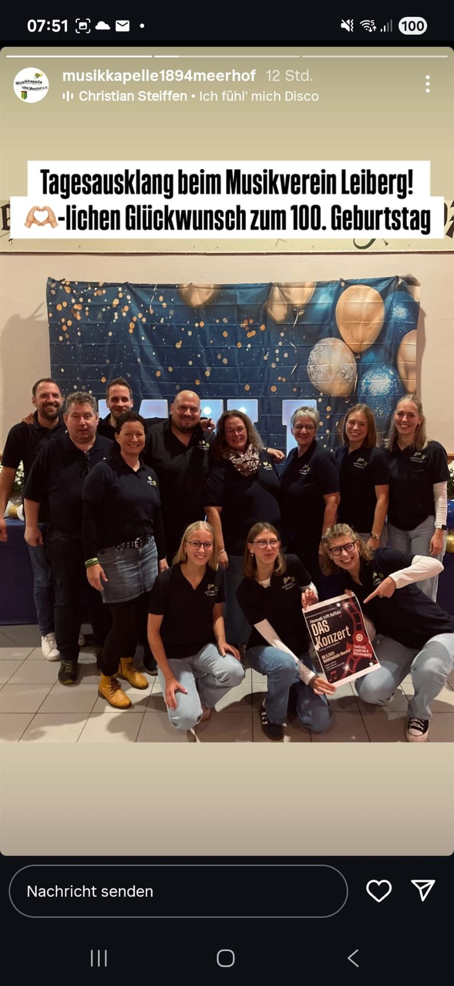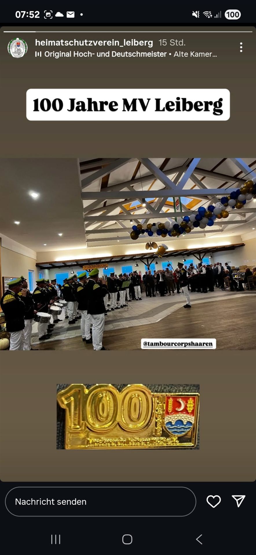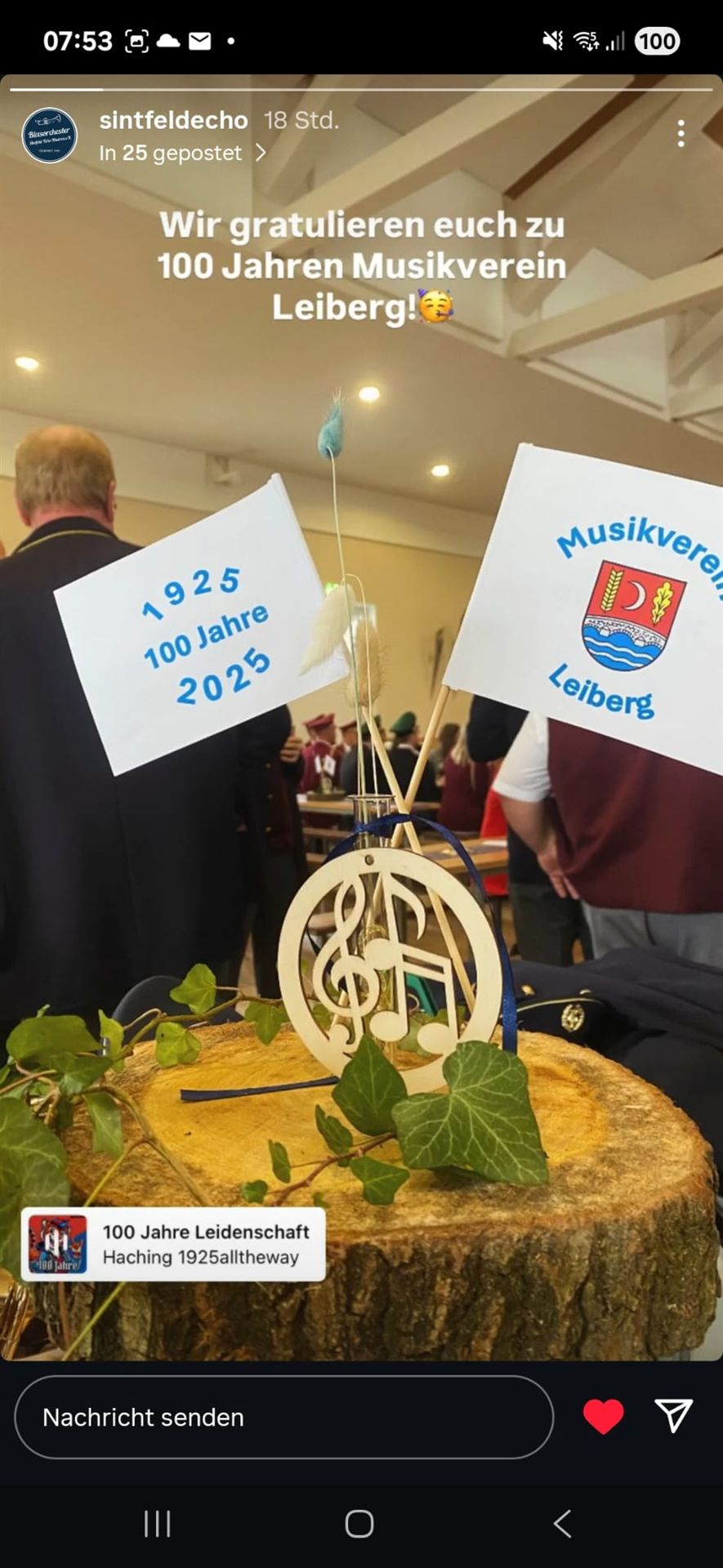 Geburtstage sollte man mit vielen Gästen, netten Gesprächen, guten Freunden und einem bunten Programm feiern. Dies dachte sich auch der Musikverein Leiberg, als dieser sein 100-jähriges Jubiläum feierte. Am frühen Nachmittag empfing man die Gäste in der Schützenhalle in Leiberg mit Konzertbeiträgen und einem anschließenden Zusammenspiel aller geladenen Vereine. Mit ausgelassener Partystimmung und Tanz mit der Band VIVA wurde der Tag abrundet.