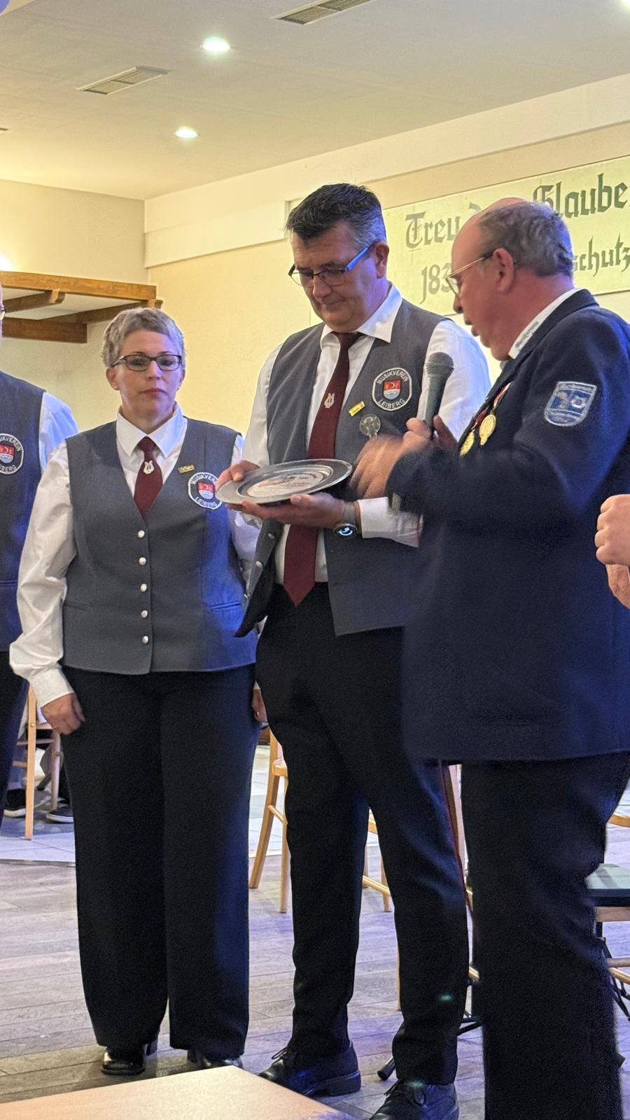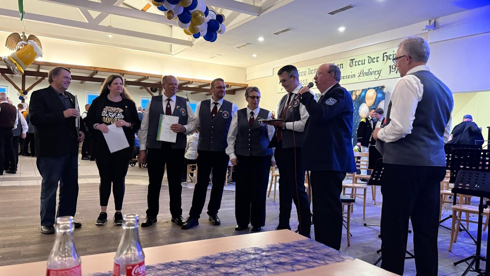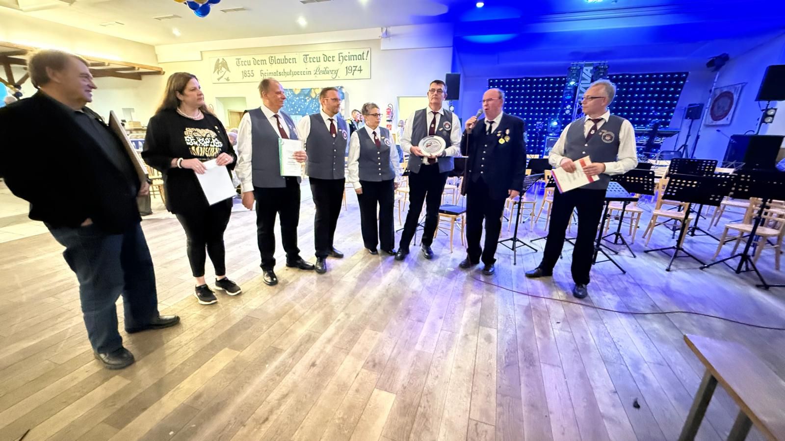 Der Musikverein Leiberg erhielt als hohe Auszeichnung den Landesehrenteller vom Volksmusikerbund NRW für 100 Jahre Musikverein verliehen.